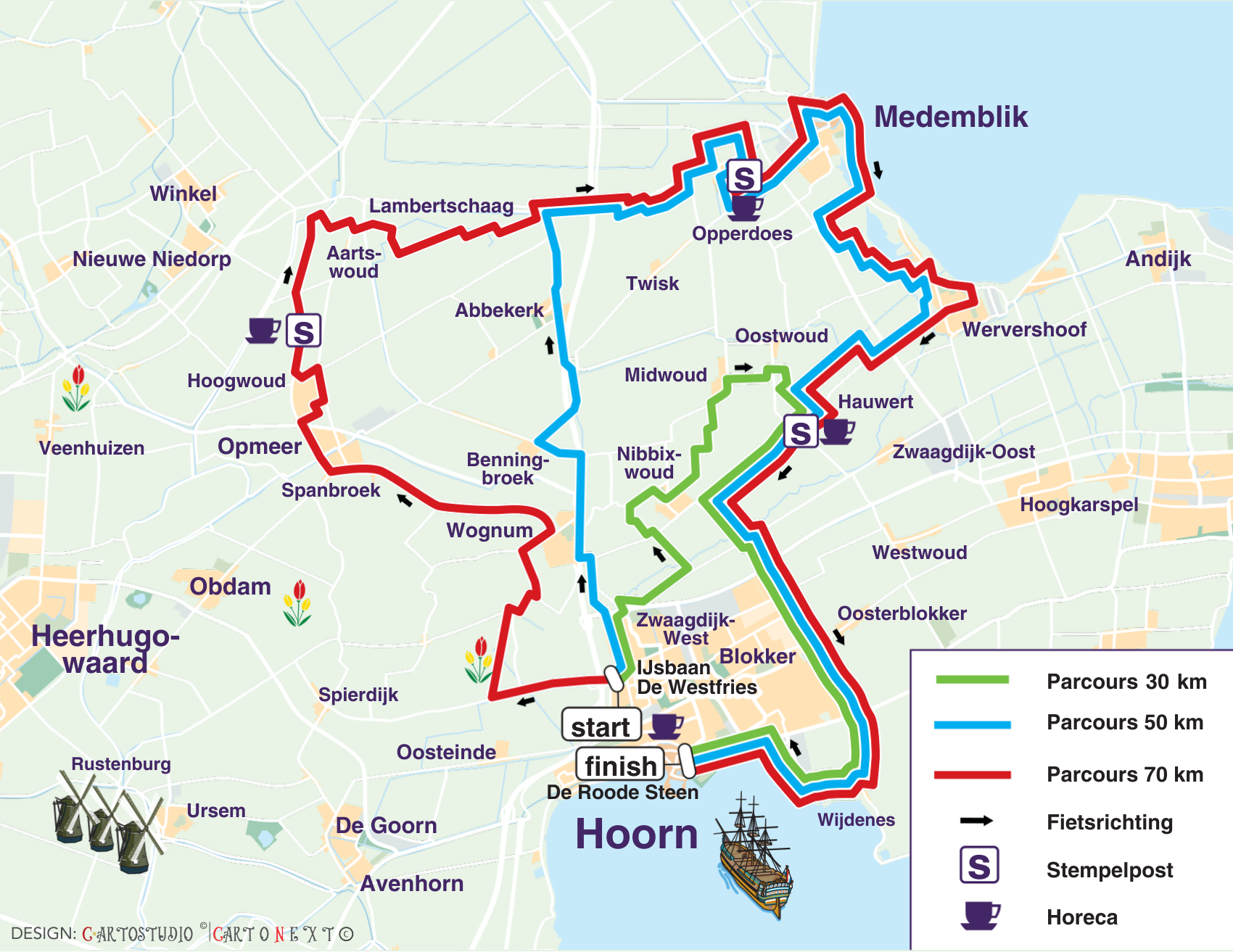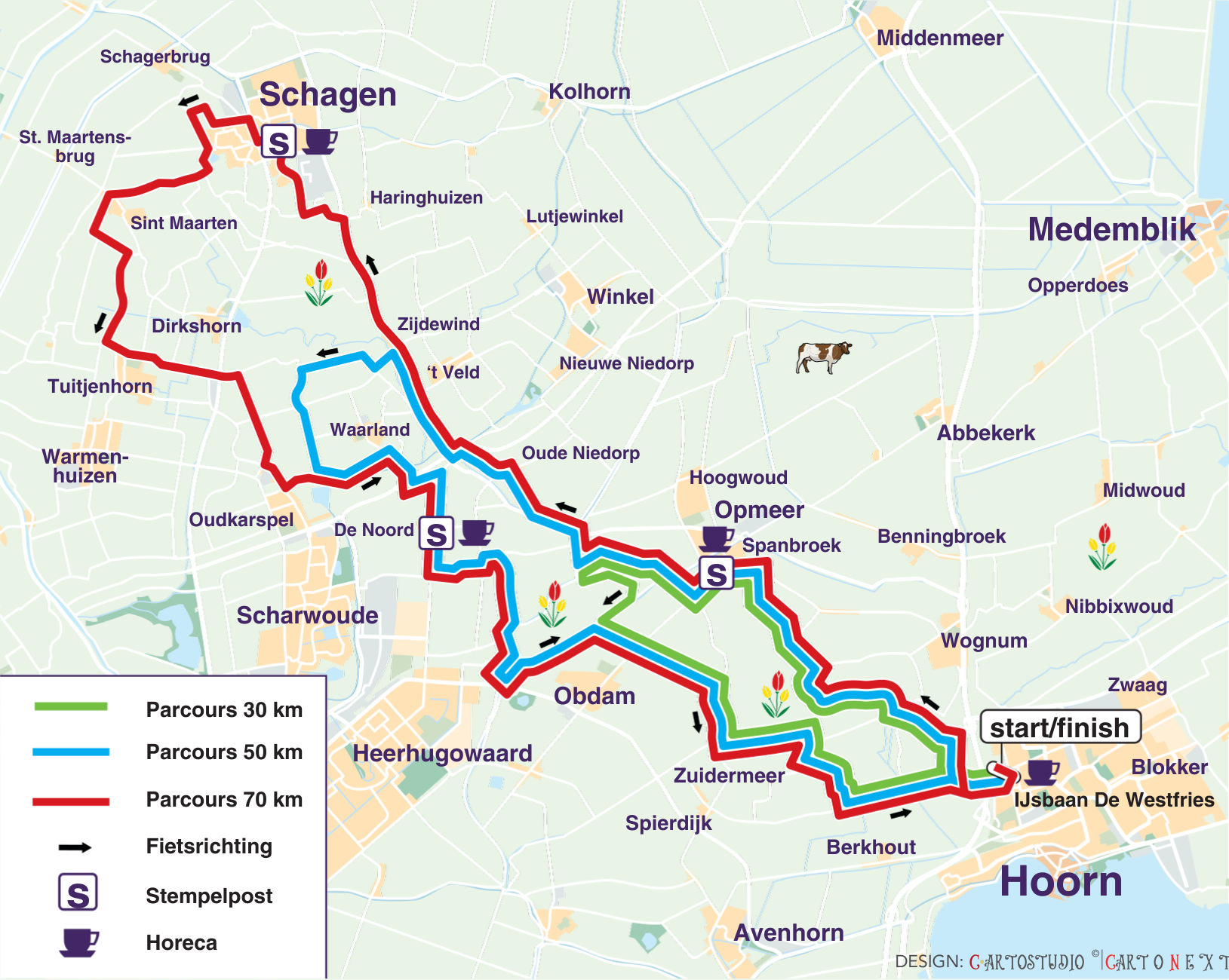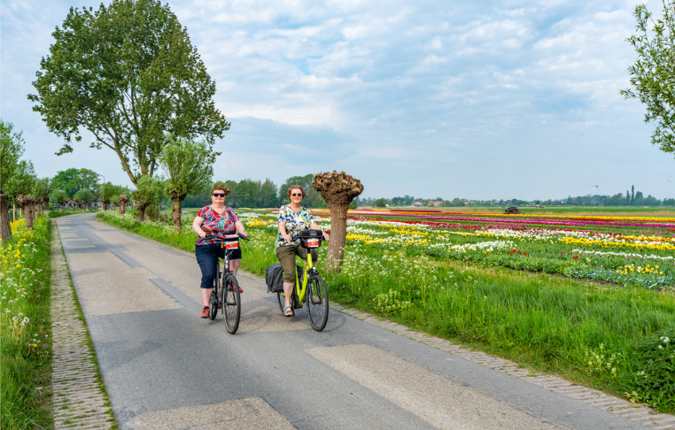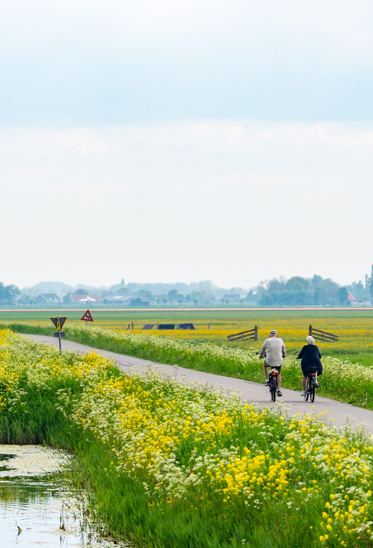 Het gebied dat omgeven wordt door de Westfriese Omringdijk kent een geheel eigen landschap. De bloeiende tulpenvelden, uitgestrekte polders, oude havenstadjes en unieke stolpboerderijen zijn prachtig in deze tijd van het jaar.Ik fiets mee!
